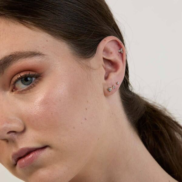 Crafted from solid 18K gold, this delicate heart attachment is adorned with premium zirconia gemstones for a timeless sparkle. Measuring 5mm, it’s designed to fit 16GA and 18GA threadles flat back labret posts (sold separately).Versatile and elegant, this piece is perfect for a range of piercings including the ear, tragus, helix, cartilage, and conch.