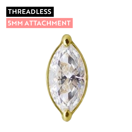 18K Gold - Marquise Shape Premium Zirconia - 5mm Threadless Attachment