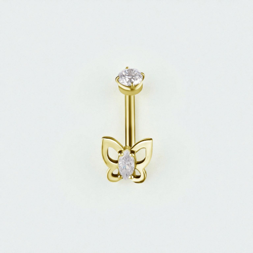 Gold Steel Internal Thread Rook Bar – Premium Zirconia Butterfly