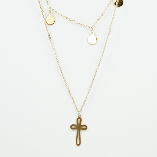 Layered cross design in 24K PVD Gold Surgical Steel. Durable and fashion-forward with tarnish-resistant finish.