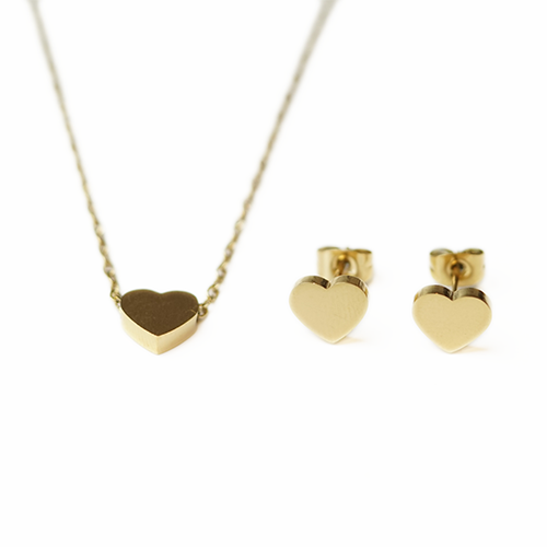 Minimalist and stylish, this mini heart set is crafted from hypoallergenic, tarnish-resistant 24K PVD Gold Surgical Steel. A sleek choice for everyday fashion.