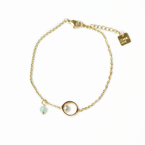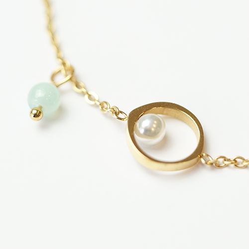 Pearl circle pendant with turquoise accent. Crafted from tarnish-resistant 24K PVD Gold Surgical Steel for vibrant, trendy style.