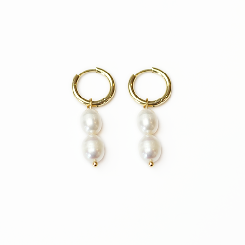 A bold update to classic hoops. These pearl-accented earrings are made from durable, tarnish-resistant 24K PVD Gold Surgical Steel.
