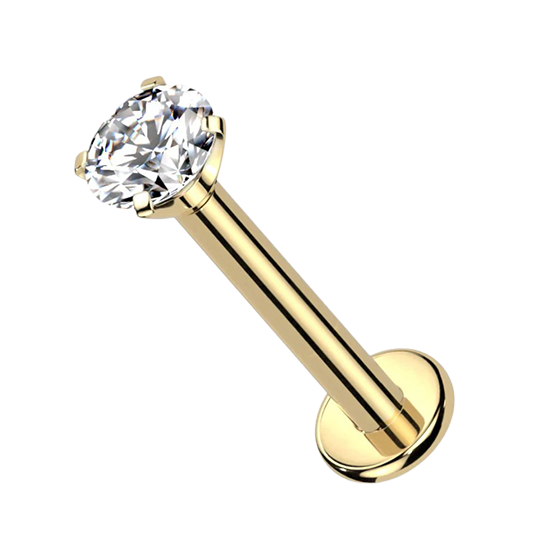 Gold Titanium - Round Bezel - Cubic Zirconia - Threadless Labret