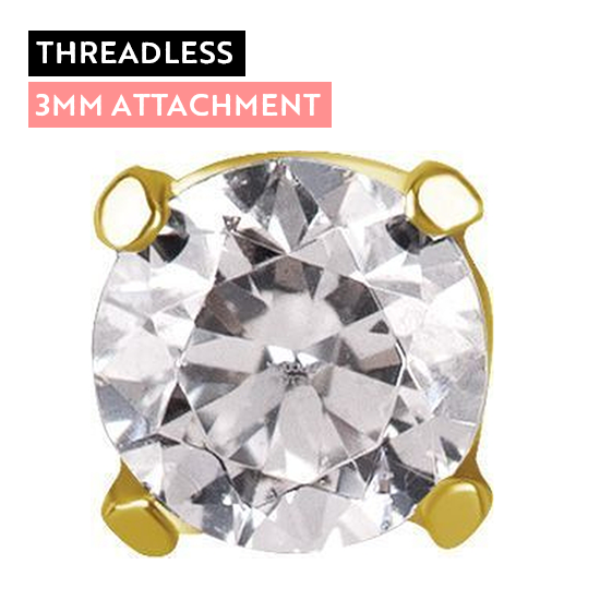 Gold Titanium - Round Clawset Premium Zirconia - 3mm Threadless Attachment