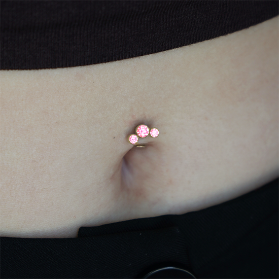 Gold Titanium Threadless Attachment - Pink Cubic Zirconia Bezel Set Trio