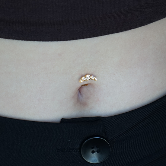 Gold Titanium Threadless Floating Belly Attachment - Cubic Zirconia Half Moon Cluster - 14 Gauge