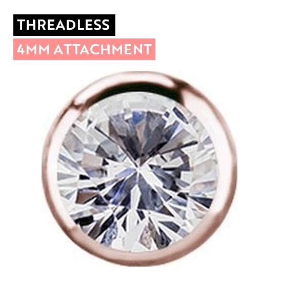Elevate your style with this luxurious rose gold titanium attachment, featuring a sparkling 4mm premium zirconia stone. Designed with a threadless mechanism for easy, secure wear, it offers a sleek, modern look while prioritizing comfort and durability.