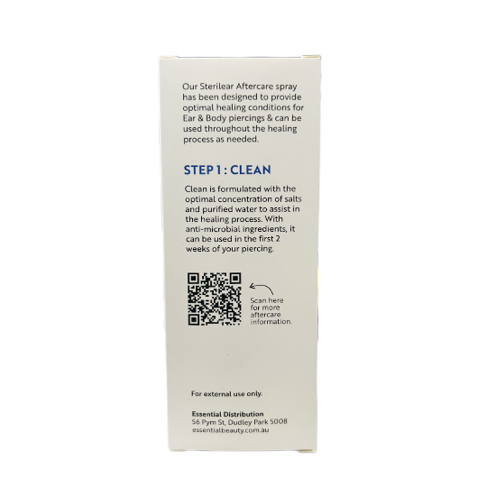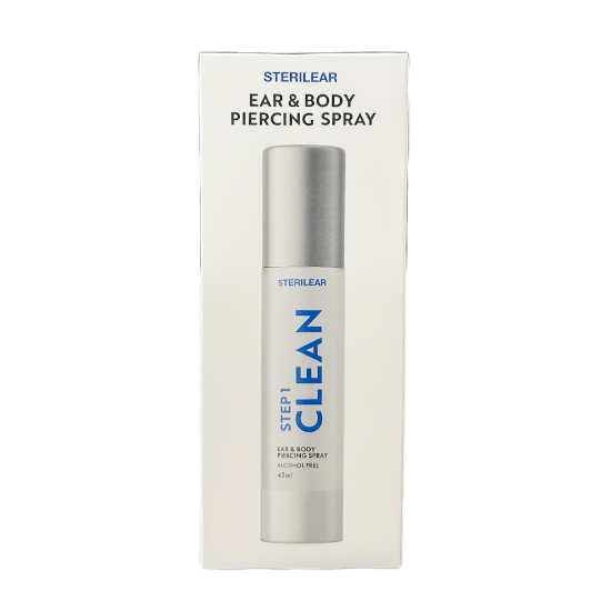 The Sterilear Piercing Spray Step 1 formula creates an optimal environment for healing your piercings. Research has concluded that shorter healing times occur when naturally optimal healing environments are promoted rather than trying to heal with chemicals (soap, alcohol and the like) because these destroy beneficial bacteria.
