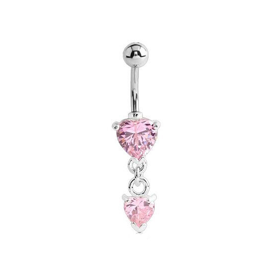 This stunning belly bar made of SS316L Surgical Steel with a lovely heart shape as the centre piece. Another smaller heart hangs underneath both set with cubic zirconia stones. Express your love and warmth with this gorgeous belly bar. Externally threaded and 10mm in length.