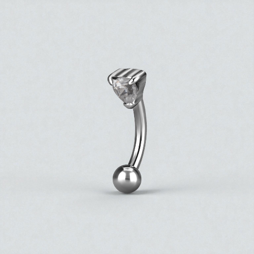 This beautiful curved banana barbell is made from high-polished, scratch resistant SS316L Surgical Steel. Featuring a claw-set heart-shaped cubic zirconia gemstone top and a plain ball base. The highest quality materials have been used to craft this beautiful piece and guarantee high skin tolerability and longevity.