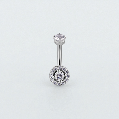 Designed specifically for rook piercings, the 7mm bar length provides a snug and stylish fit. The shimmering zirconia halo setting adds a touch of luxury and sparkle, making it an ideal choice for those who love refined, statement jewellery.