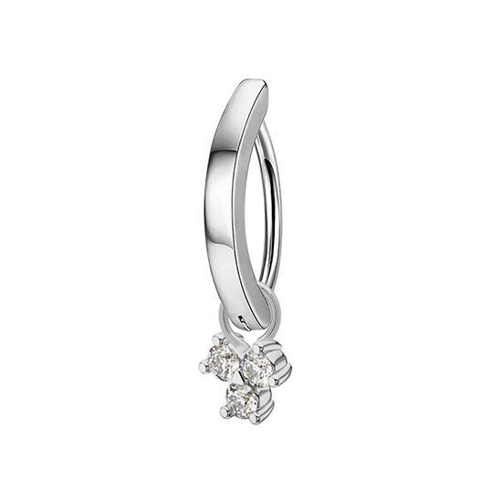 A playful twist on a classic belly ring, this D-ring features a sparkling cubic zirconia trinity charm for effortless style and shine. Made for those who love to show off their belly jewellery, it adds the perfect touch of sparkle to any outfit. Lightweight, comfortable, and durable, it’s the ideal piece to elevate your belly piercing with a bit of fun flair.