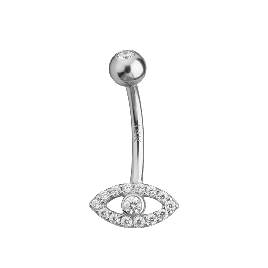 Add a touch of style and sparkle with this evil eye titanium belly ring. Its brilliant evil eye cubic zirconia centrepiece catches the light beautifully, making it perfect for showing off your personality. Designed for comfort and durability, it’s a fun, stylish choice for any healed piercing.