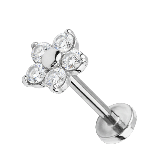 Titanium - Flower - Cubic Zirconia - Threadless Labret