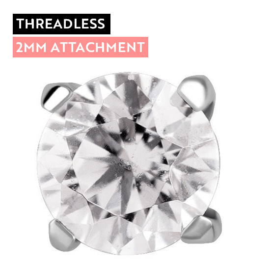 Elevate your piercing with this sleek, premium-quality body jewellery. Crafted from durable titanium, this piece features a brilliant 2mm zirconia stone securely set in a round claw design for maximum sparkle. The threadless attachment ensures easy, comfortable wear while keeping your piercing stylish and secure.