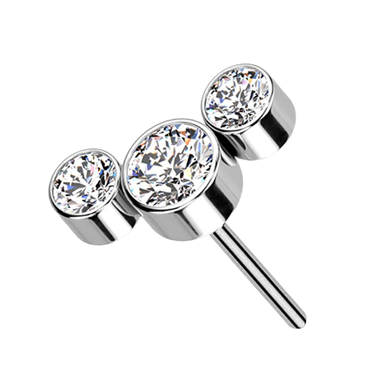 Titanium Threadless Attachment - Cubic Zirconia Bezel Set Trio