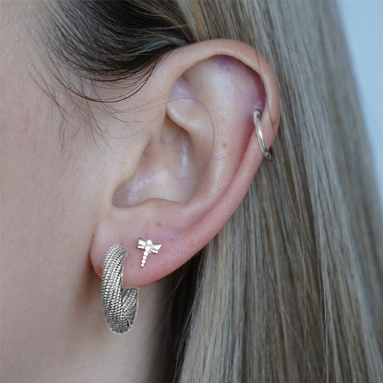 This Titanium Dragonfly labret features a sparkling cubic zirconia accent and a delicate dragonfly design, perfect for adding a subtle touch of elegance to your healed piercings. Its durable titanium construction ensures it is safe, hypoallergenic, and long-lasting.